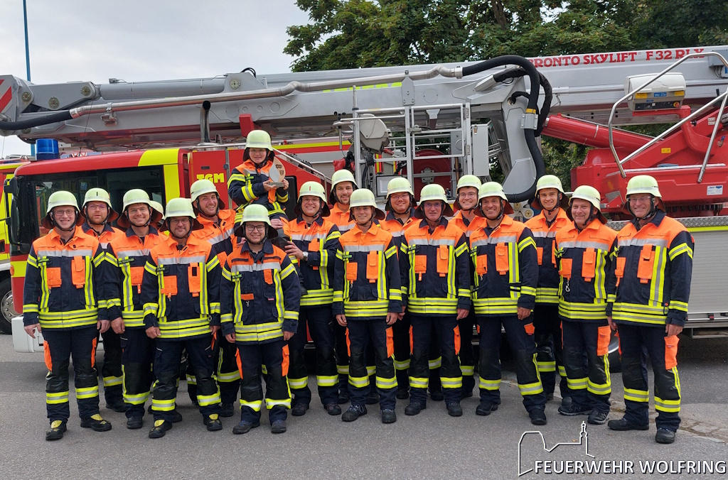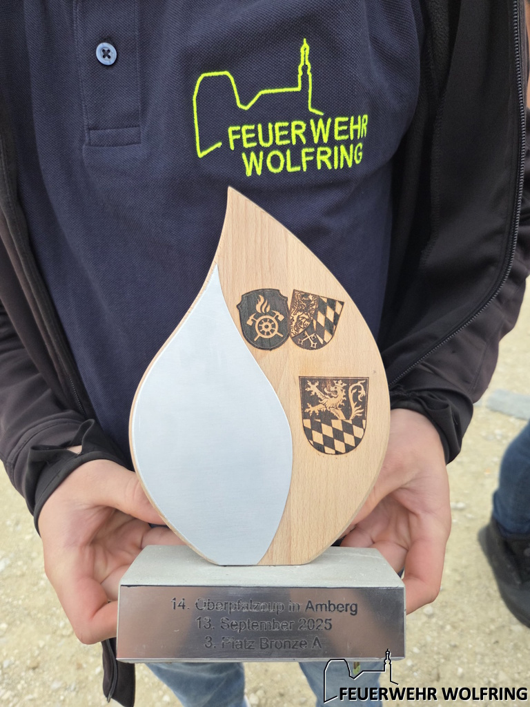 Bei der Siegerehrung am Abend konnten die Abzeichen für die bestandenen Prüfungen in Empfang genommen werden. Zudem konnte die Mannschaft Wolfring 1 mit einer fehlerfreien Leistung im Oberpfalzcup den dritten Platz belegen und erhielt dafür einen Pokal. Diesen Erfolg feierte man beim anschließenden Partyabend in der Amberger Feuerwache zusammen mit allen anderen Bewerbsgruppen.